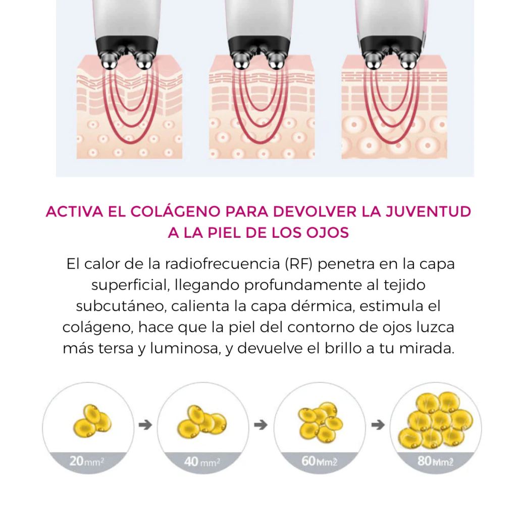 Función: Rejuvenecimiento de la piel, lifting facial, eliminación de círculos oscuros y tensado de la piel.