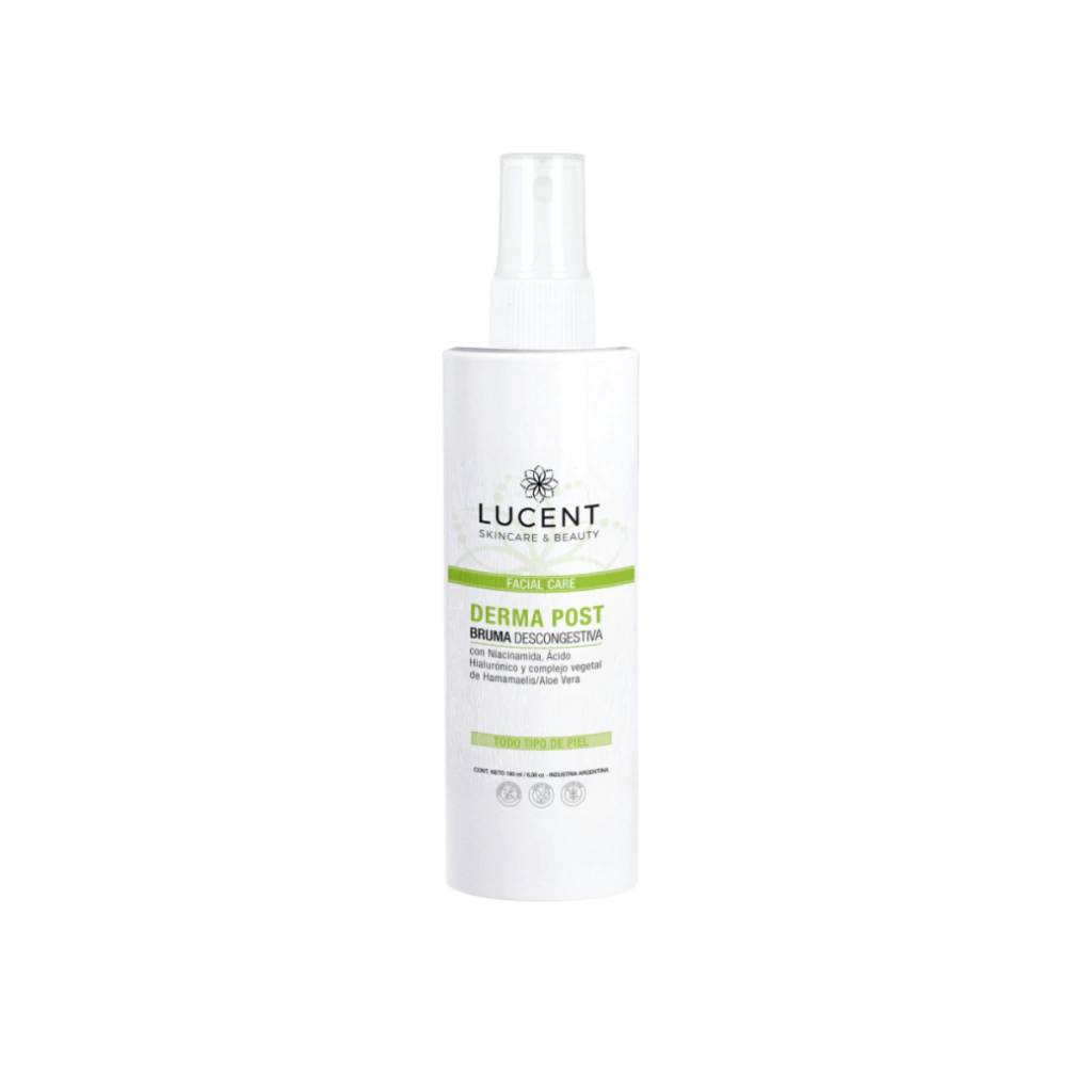 Derma Post (Bruma Descongestiva): La bruma perfecta para calmar la piel después del peeling. Refresca, reduce el enrojecimiento y alivia la sensación de tirantez, preparando la piel para el siguiente paso. (180 ml)